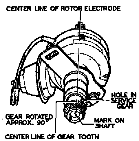 NOTE: On replacement distributor gears, the role pin hole is located higher than the original gear roll pin hole, so that distributor shaft will not be weakened when the shaft is rotated 90 degrees and drilled to accommodate the replacement gear.
