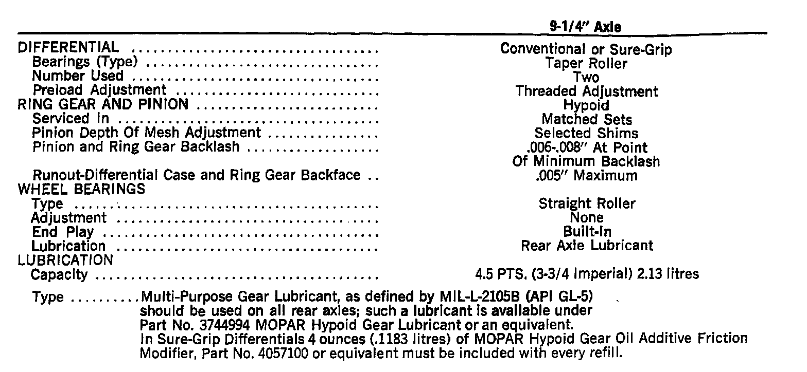9-1/4" Axle Specifications: