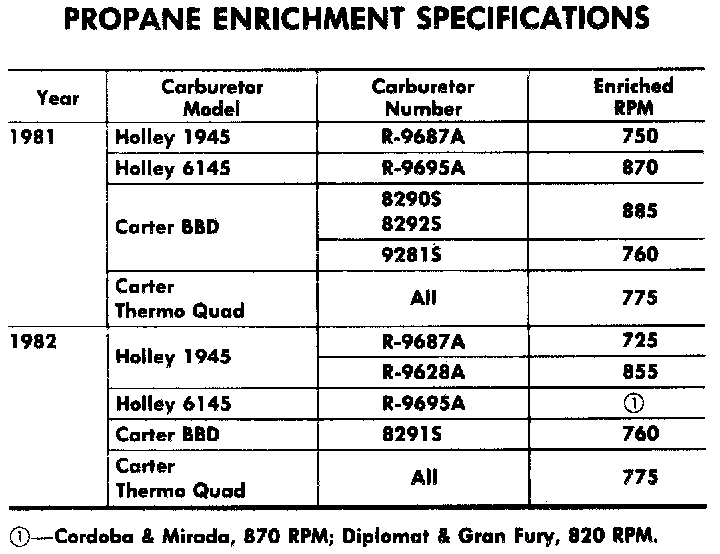 Fig. 41 - Propane Enrichment Adjustment Specifications: