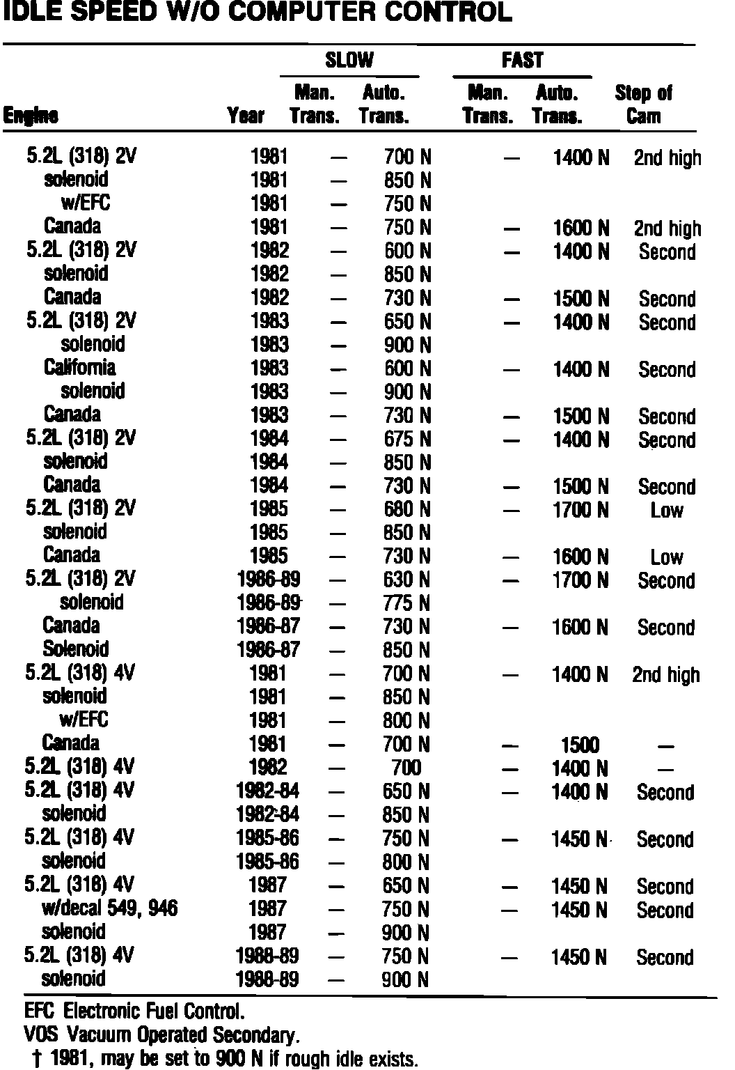 Gran Fury V8-318 5.2L VIN N 4-bbl