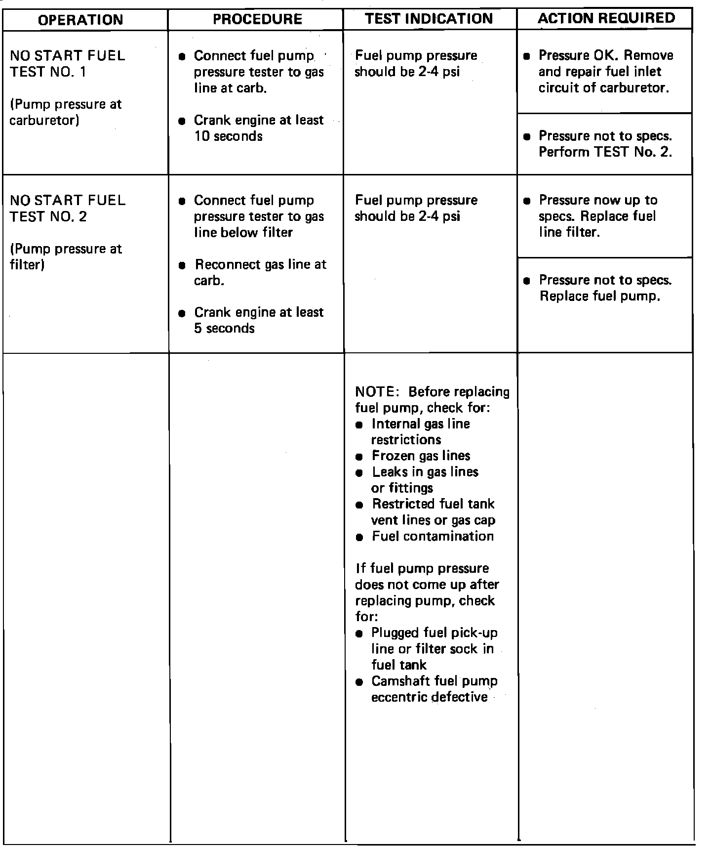 No Start/Fuel Test