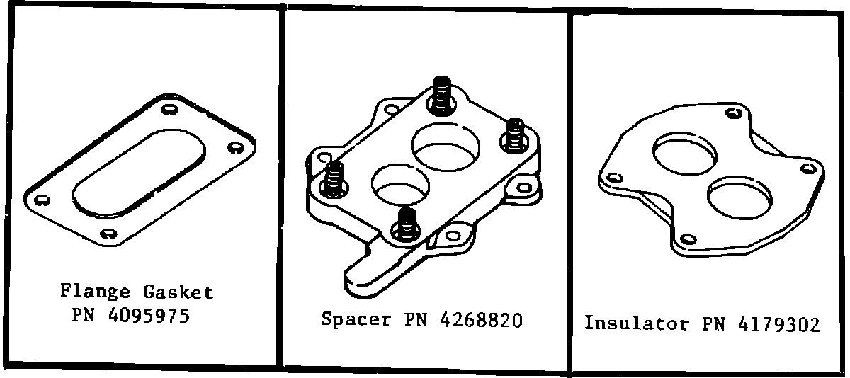 *NOTE: USING A STRAIGHT EDGE, CHECK CARBURETOR FLANGE FOR WARPING. IF FLANGE IS WARPED IT IS PERMISSIBLE TO USE A MAXIMUM OF TWO FLANGE GASKETS, PN 4095975. ADDITIONAL FLANGE GASKETS, PN 4095975, ARE AVAILABLE FROM PARTS SUPPLY.