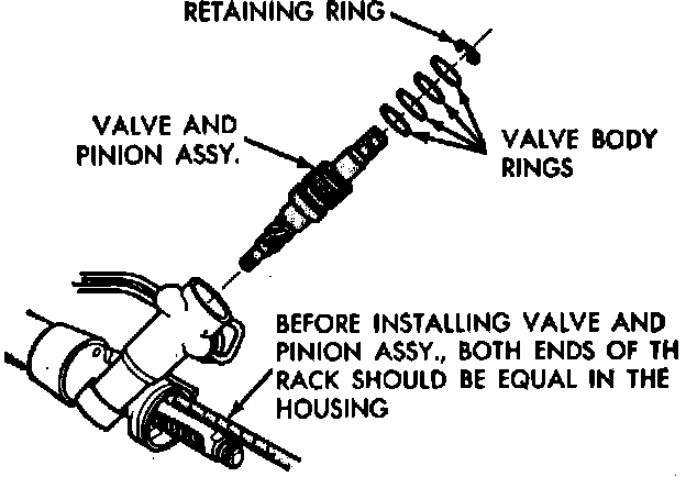 10. Install seal rings on valve body, if removed. If a condition of reduced power assist is encountered when the engine is started cold, it can be caused by improper rack and pinion valve rings. The proper rings are colored green. Any other color ring should be replaced by using Repair Package No. 5205297. Wear marks in the housing valve bore are considered to be normal and do not necessitate replacement of the housing.