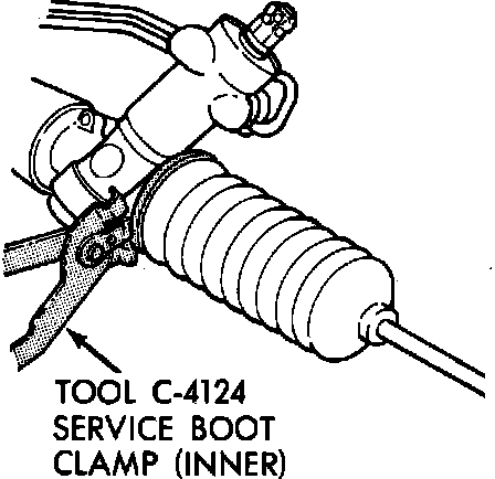 17. Align breather tube with marks made during disassembly, then install bellows with over housing lip with hole in bellows aligned with breather tube. Position inner clamp on bellows, then secure clamp using tool No. C-4124.