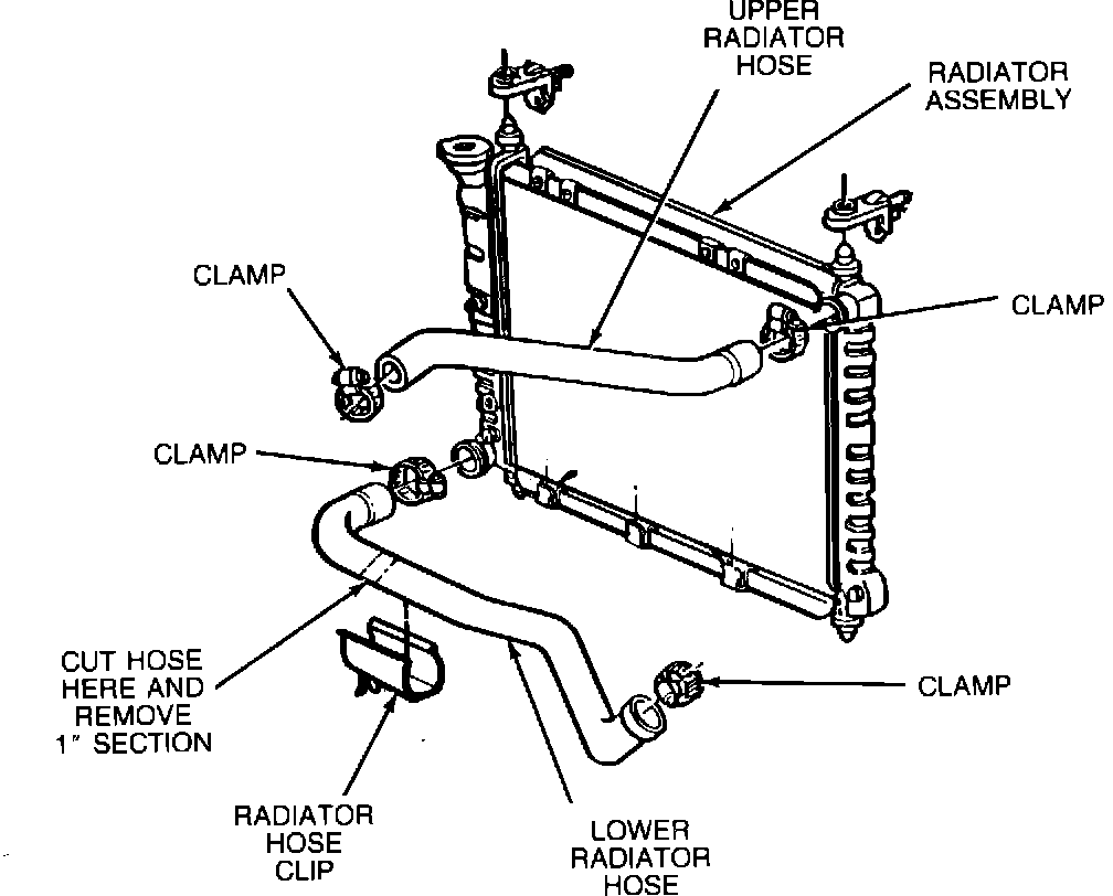 5. Cut lower radiator hose and remove a one inch section as indicated in Figure 1.