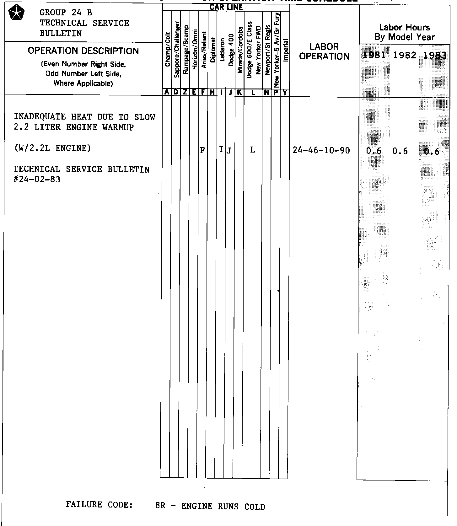 PASSENGER CAR LABOR OPERATION TIME SCHEDULE: