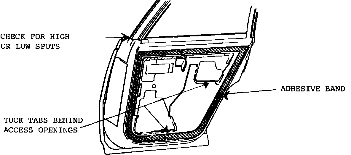 4. Check wiring and linkage for possible water leak where they are routed through inner door skin. Seal with duct tape or RTV sealer as required.