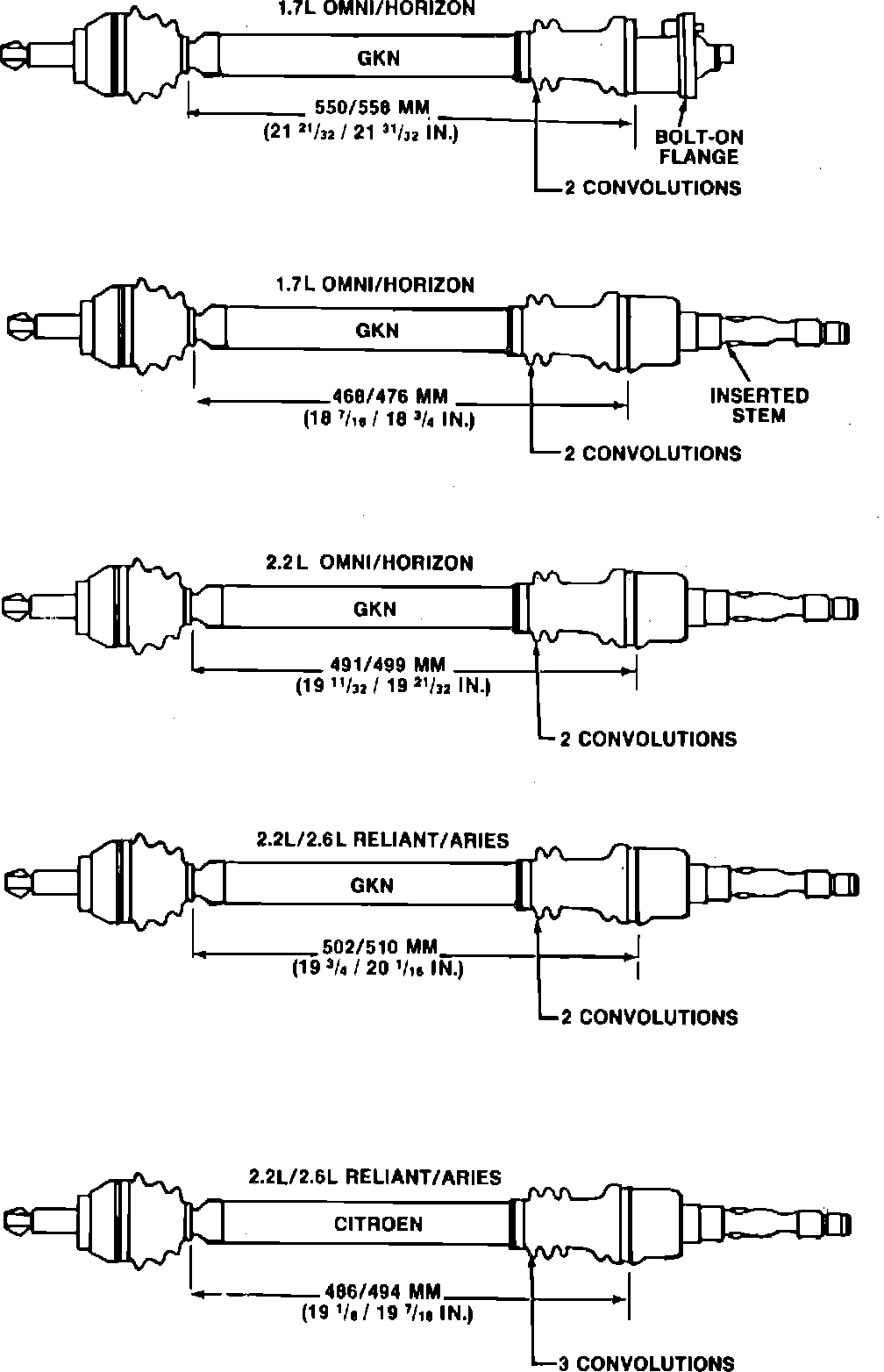Fig. 8 Right side driveshaft length. 1982: