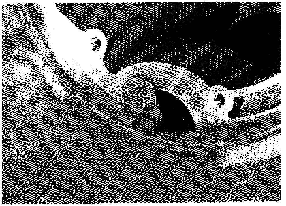 2. Using a file, remove approximately 1/8 inch of material (the thickness of 2 quarters from the pump 0-ring surface of the case, going up from the hole created. (See figure)