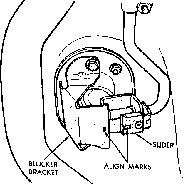 Fig. 14 Aligning slider & block bracket marks. Models w/4-105 engine: