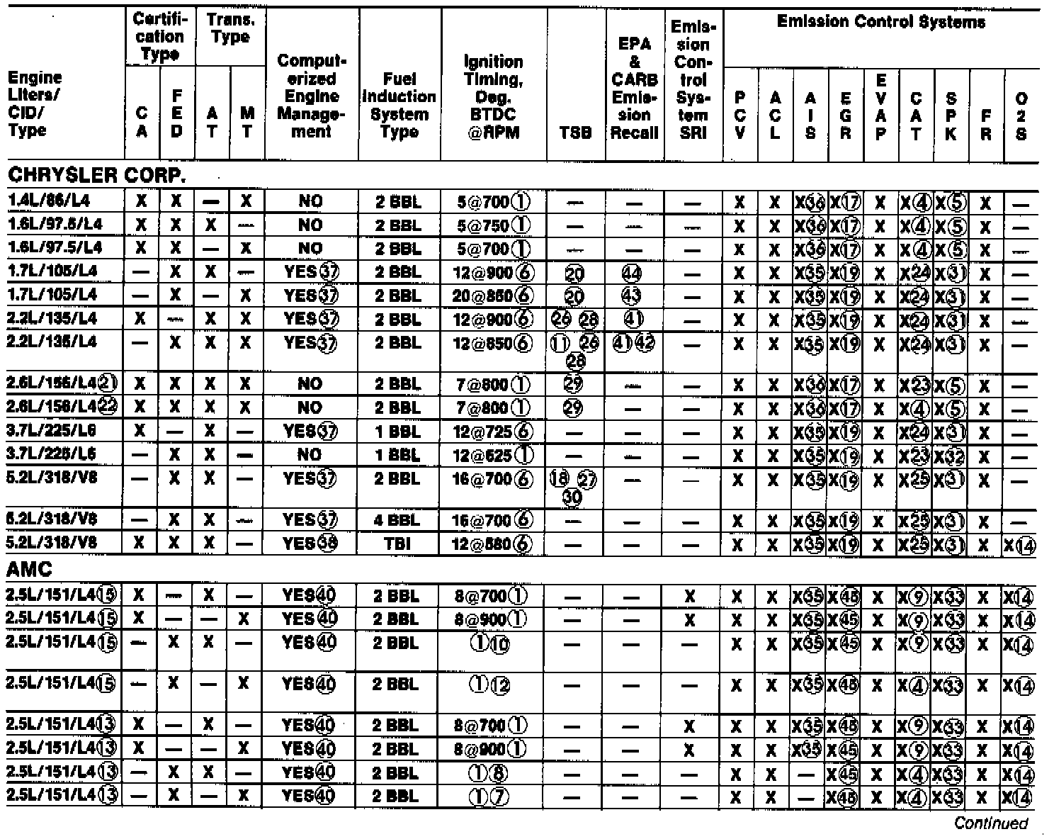 5 - DI (Distributor Ignition). Chrysler Corp. 3.7L CA. 1.7L, 2.2L & 5.2L are also equipped W/ ESA; 3.7L FED are also equipped W/ OSAC. AMC models are also equipped W/ ICTO.