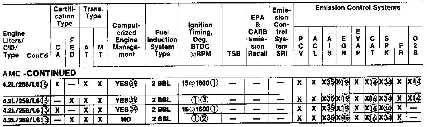42 - Certain late build models, w/VECI label CCR2.2V2HNLX, may emit HC & CO levels in excess of Federal Emissions Standards. Ignition timing adjustment change is required. For additional information, refer to Technical Service Bulletins.