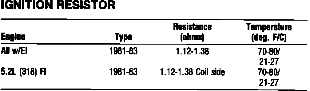 Ignition Ballast Resistor: Specifications