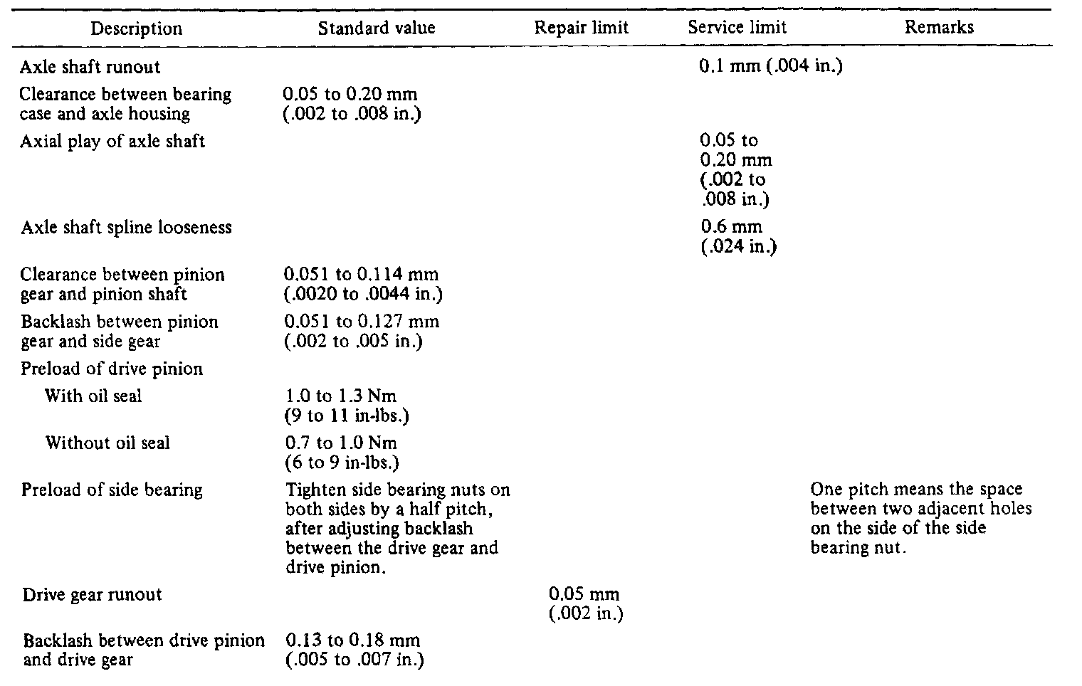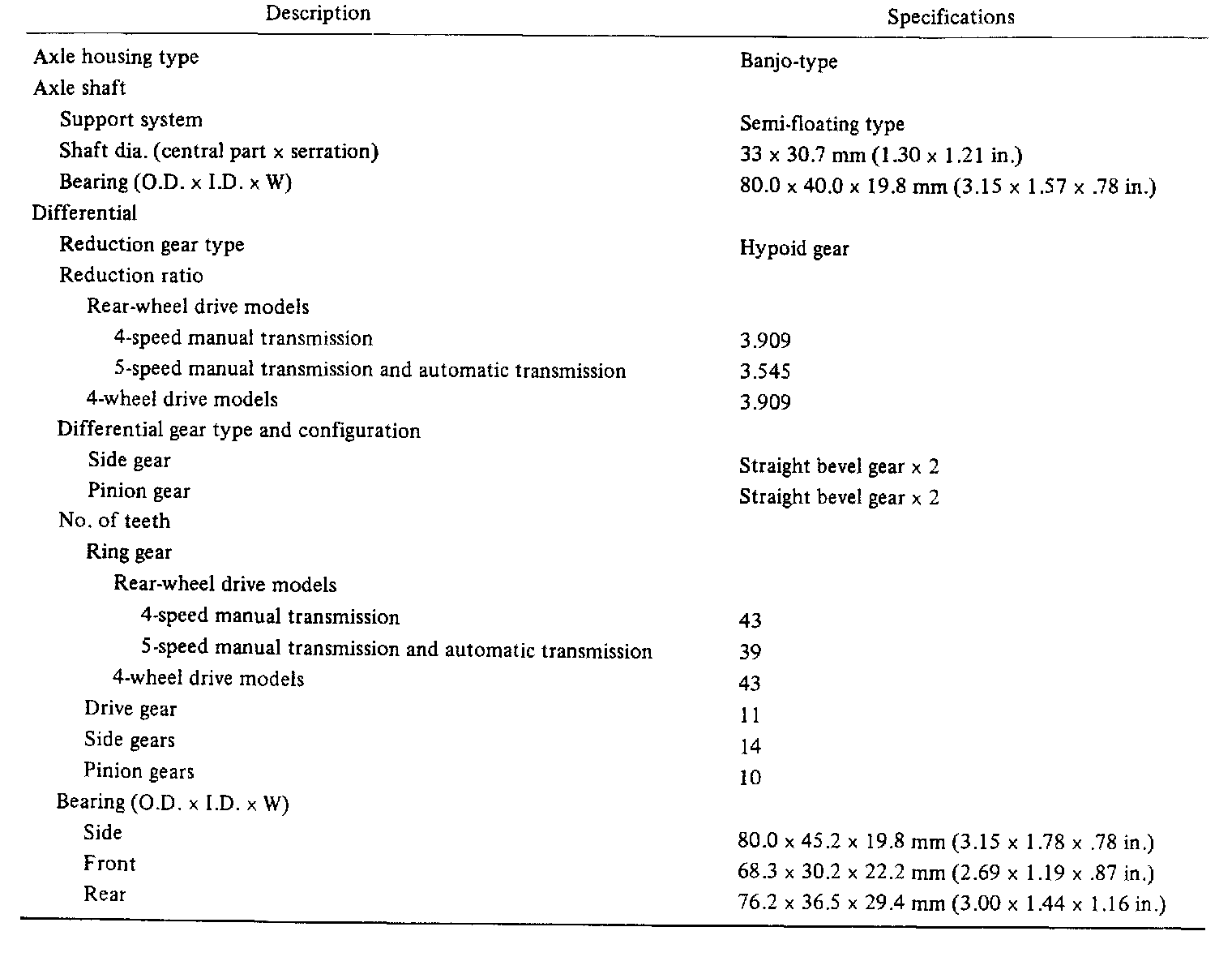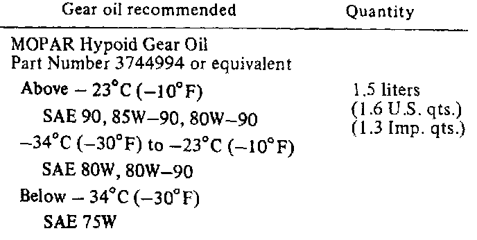 Gear Oil Specifications: