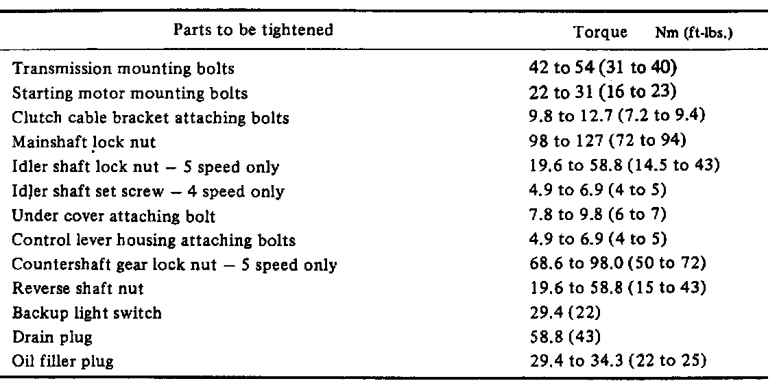 Torque Specifications