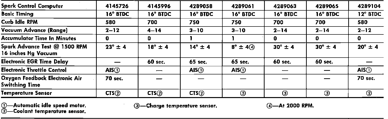 Electronic Spark Control Specs (1983 RWD):