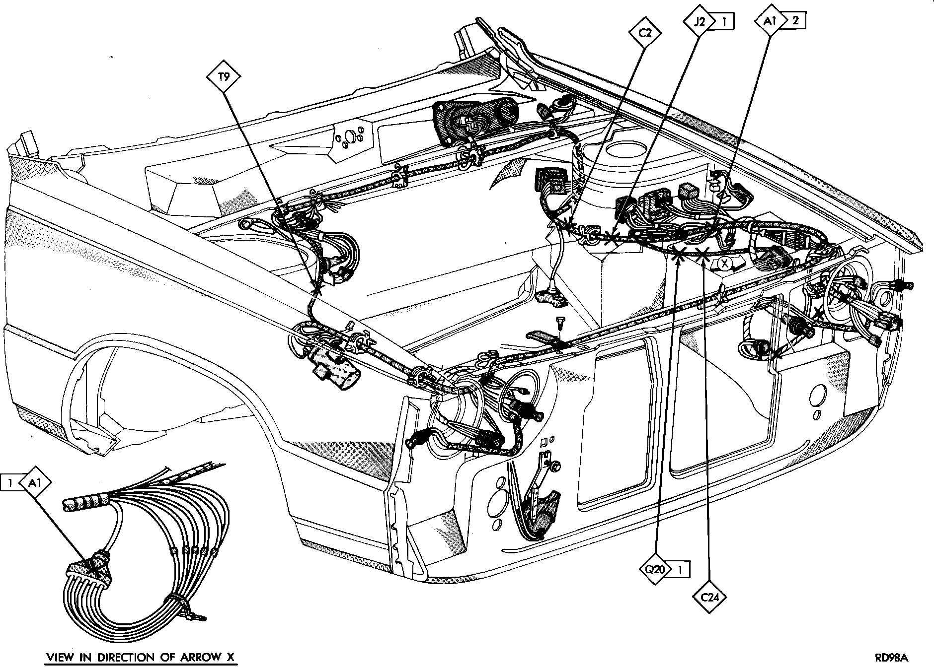 Fig. 95 Splice Locations (Engine Compartment). 1983-84 W/2.2 Liter Engine: