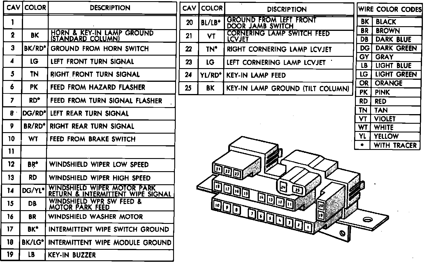 Fig. 9 Instrument Panel To Steering Column Connector (25 Way). 1983-84: