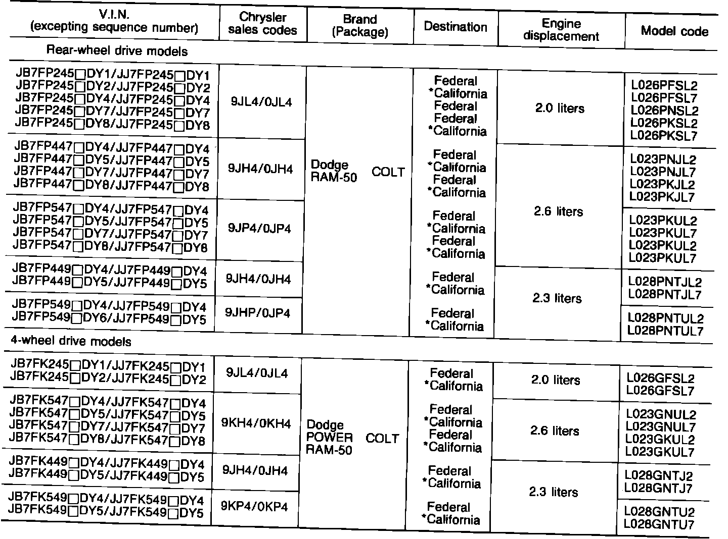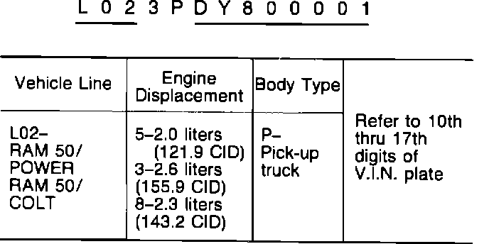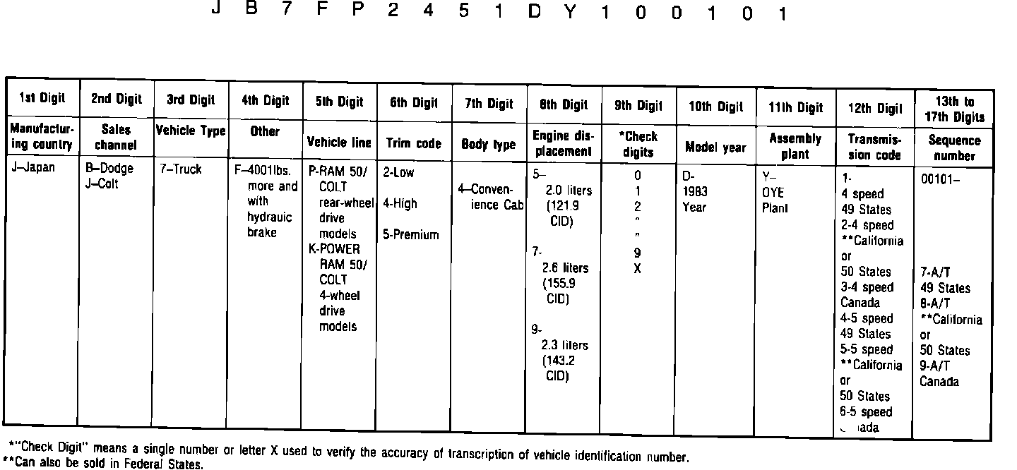 Chassis Number Code Chart