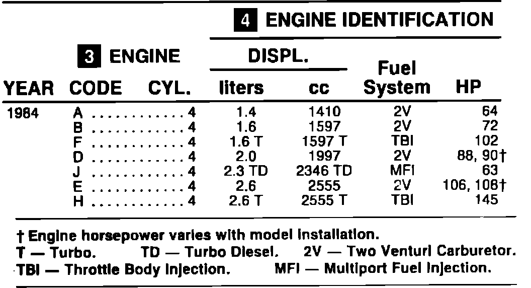 2 ENGINE CODE LOCATION: 8th character of V.I.N.
