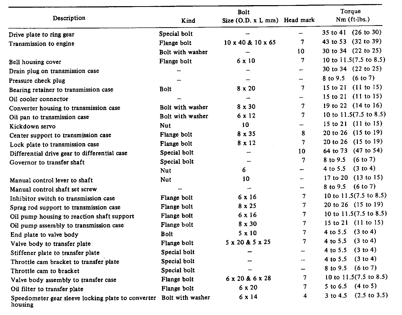 Torque Specifications