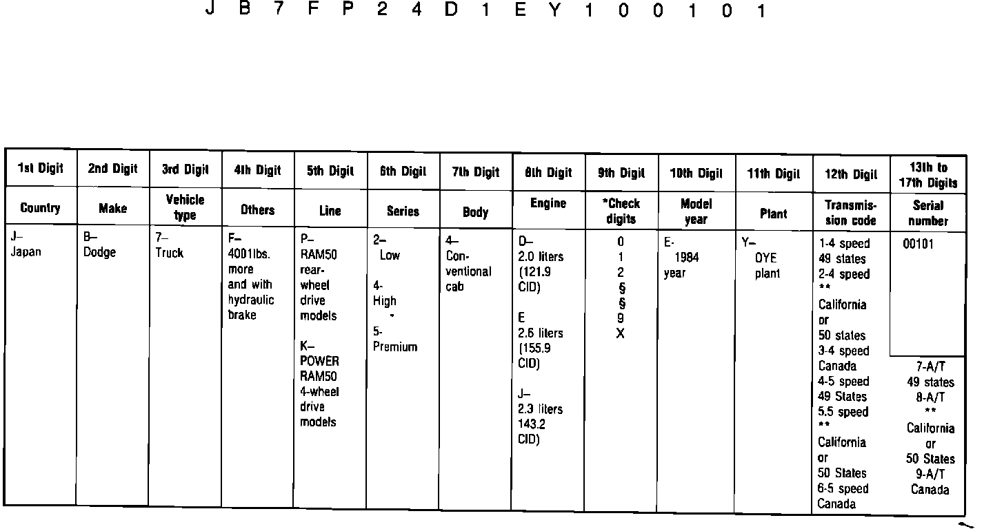 FIGURE 1 - VEHICLE IDENTIFICATION NUMBER: