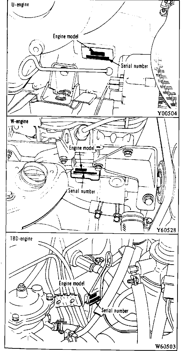 The engine model number and engine serial number are stamped onto the cylinder block in the locations indicated in the illustrations. (Fig. 3).