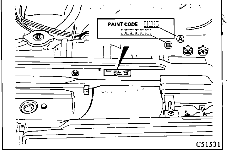 The body color code contains (A) Paint Code and (B) Body Color Name.