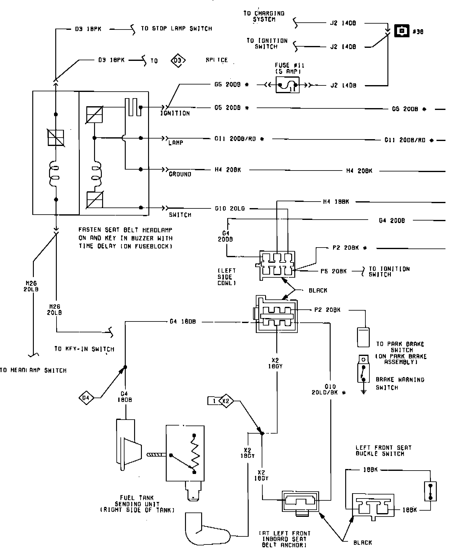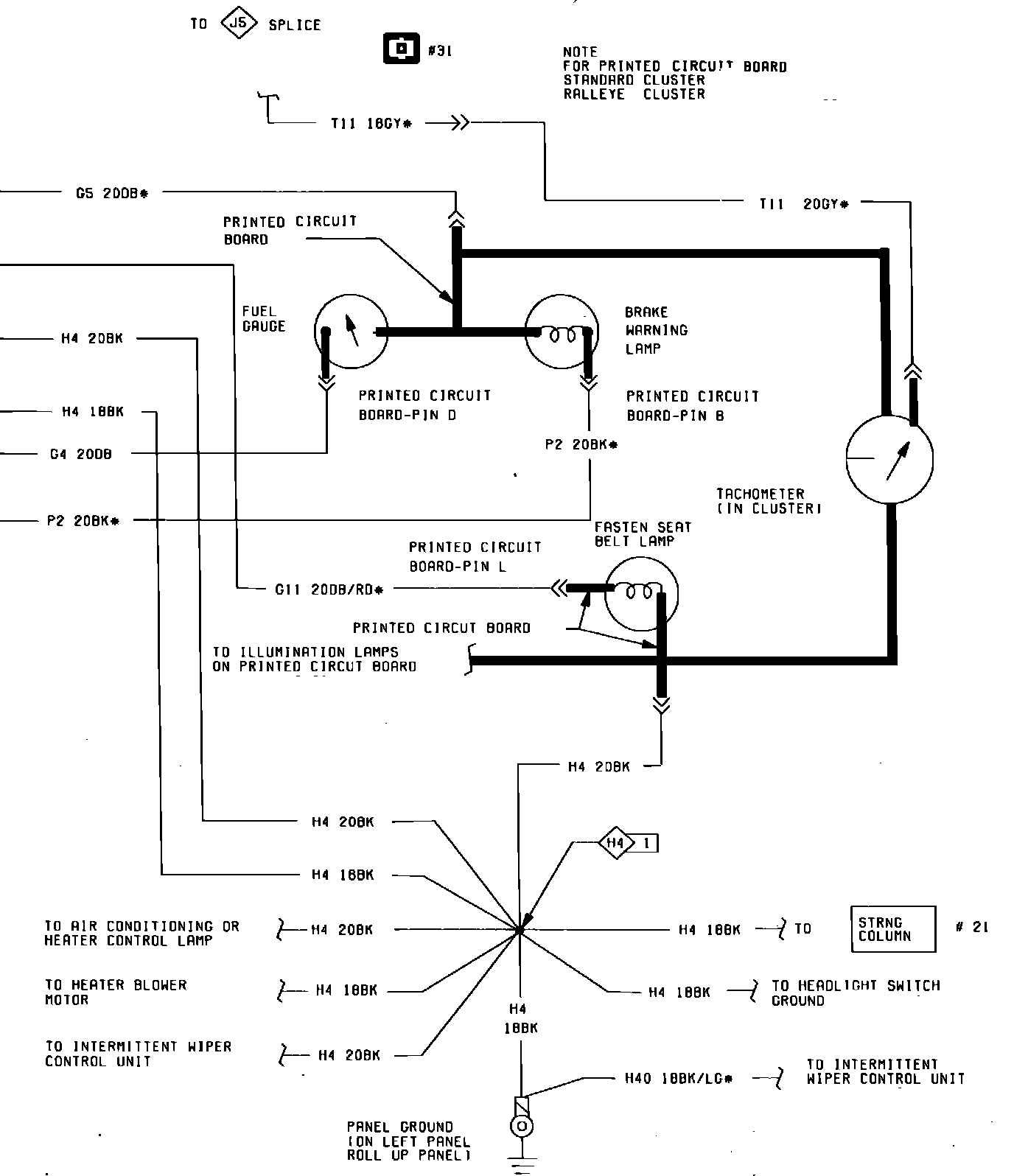 Fig. 20 Brake, Fuel Gauge, Seat Belt & Tachometer Wiring Circuit (Part 1 of 2). 1984: