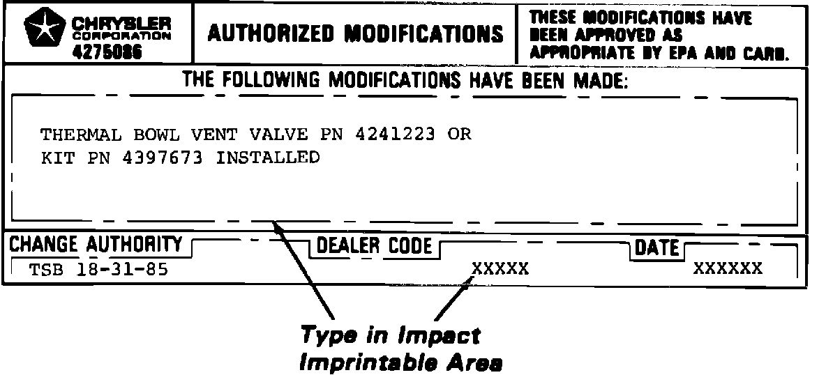 7. Apply Authorized Modification Label near or next to original VECI label.