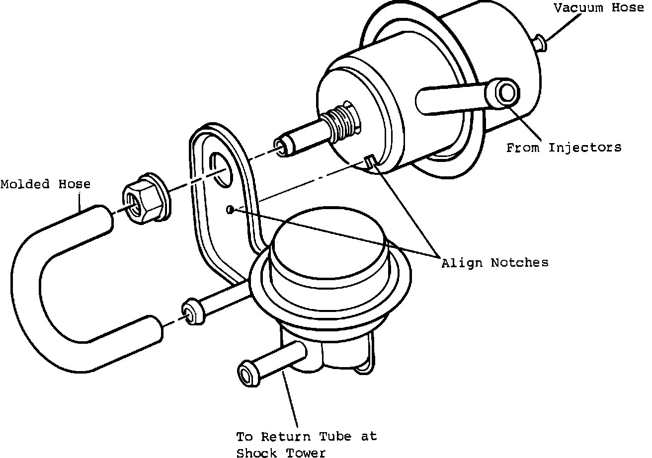 Noises identified as "clicking", "tapping", or "rattling" may be caused by the fuel pressure regulator. Pulsing from the regulator can be transmitted into the fuel tubes and thus transmitted into the passenger compartment. This noise is most noticeable at idle or just off idle.