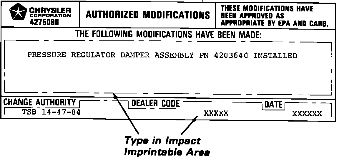 1 - Authorized Modification Label PN 4275086