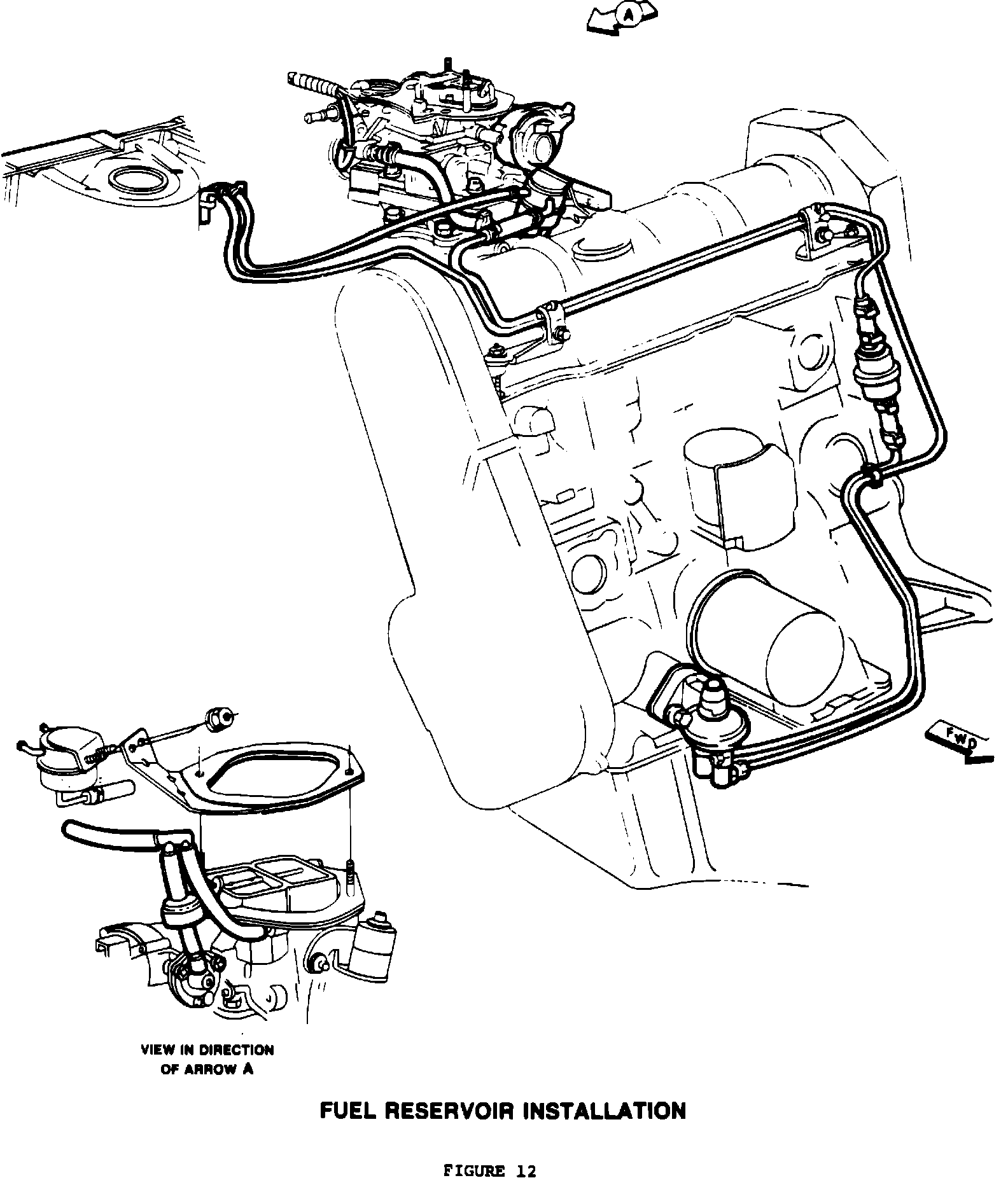 8. Install 2-1/4" long hose (connected to reservoir outlet nipple) to carburetor inlet nipple and clamp (Figure 12).