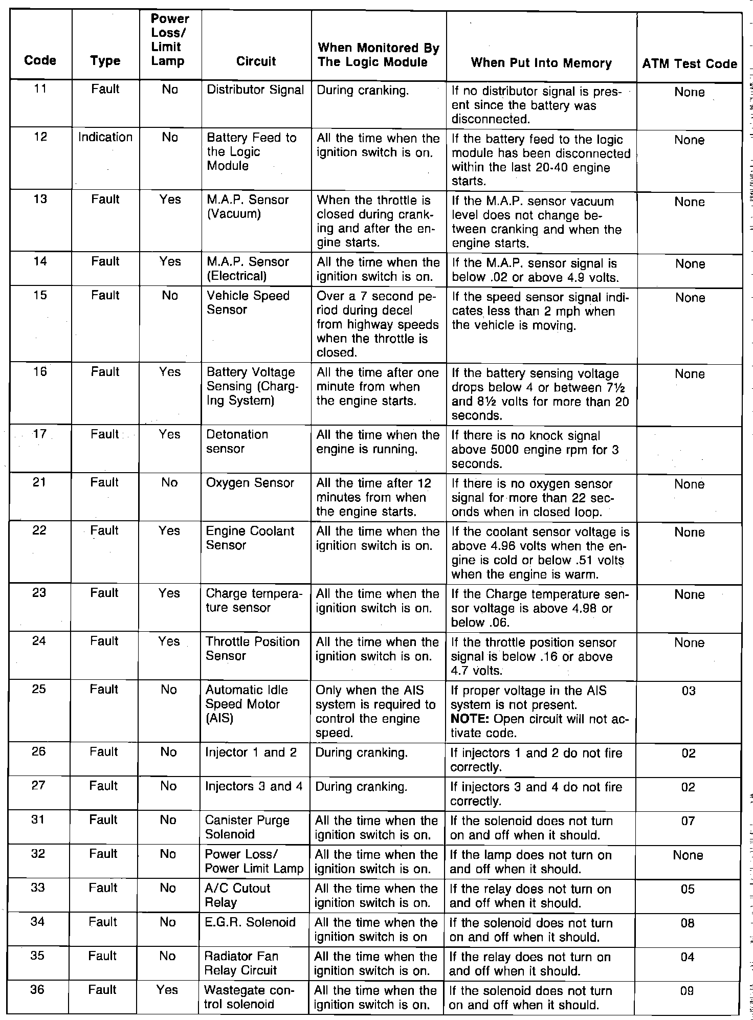 Diagnostic Trouble Code Descriptions