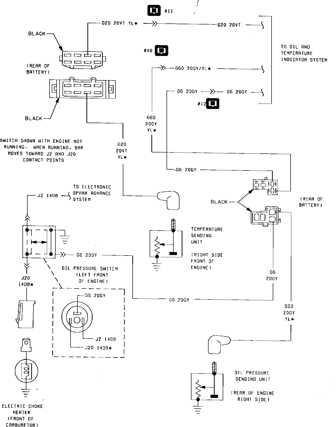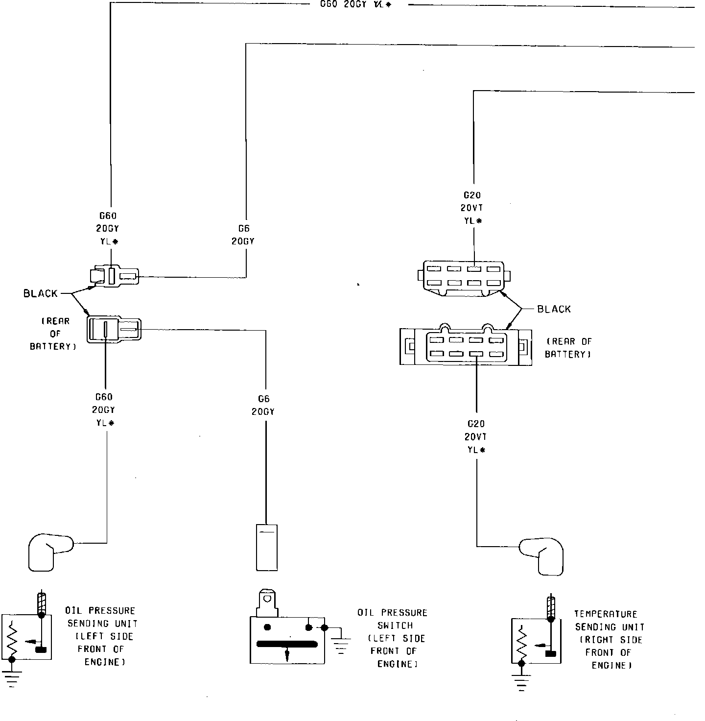 Fig. 60 Oil Pressure & Temperature Switch Wiring Circuit. 1985 W/2.2 Litre Engine, Less EFI: