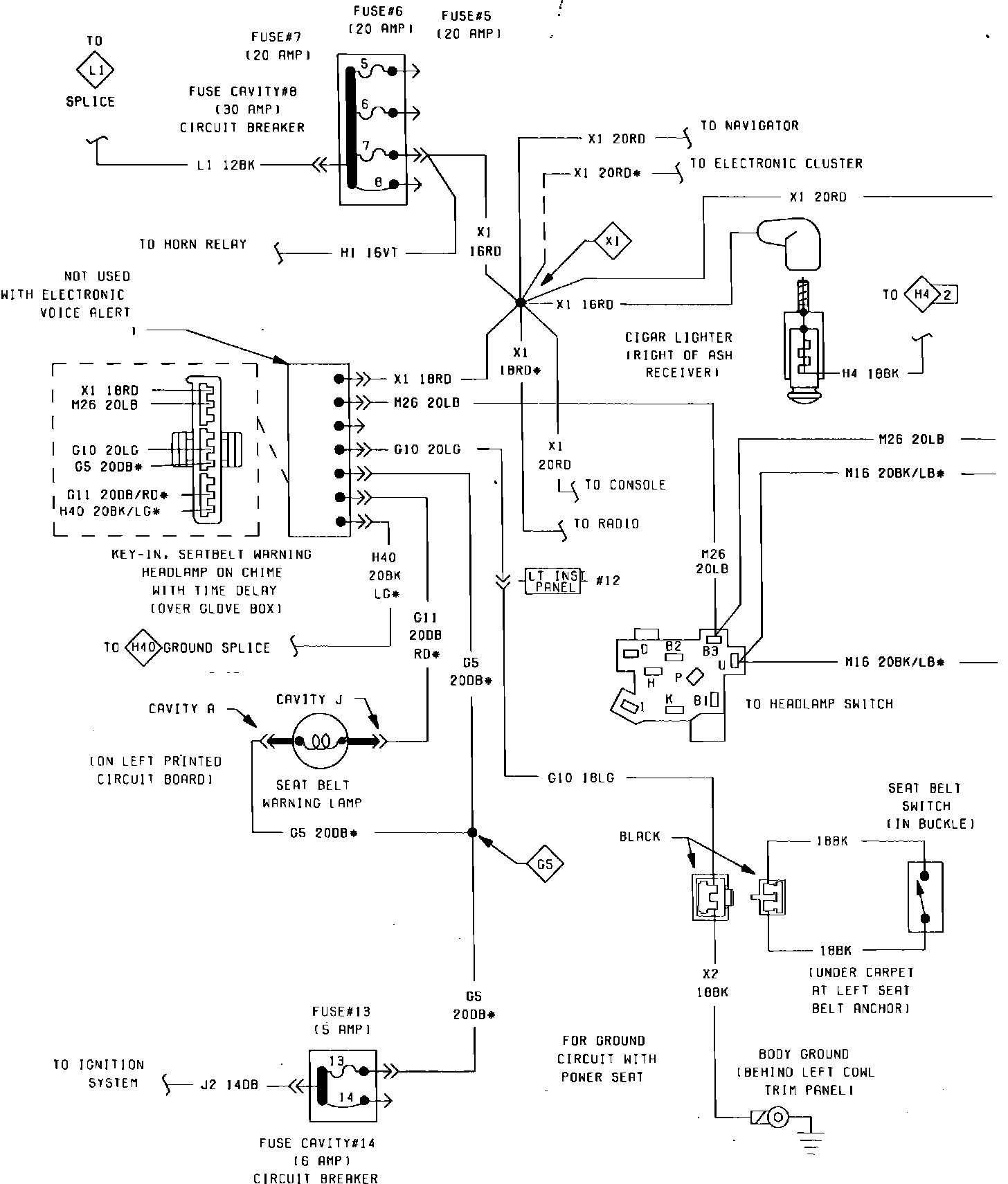 Fig. 54 Ignition Key-In & Seatbelt Warning System Wiring Circuit. 1985 Seatbelt: