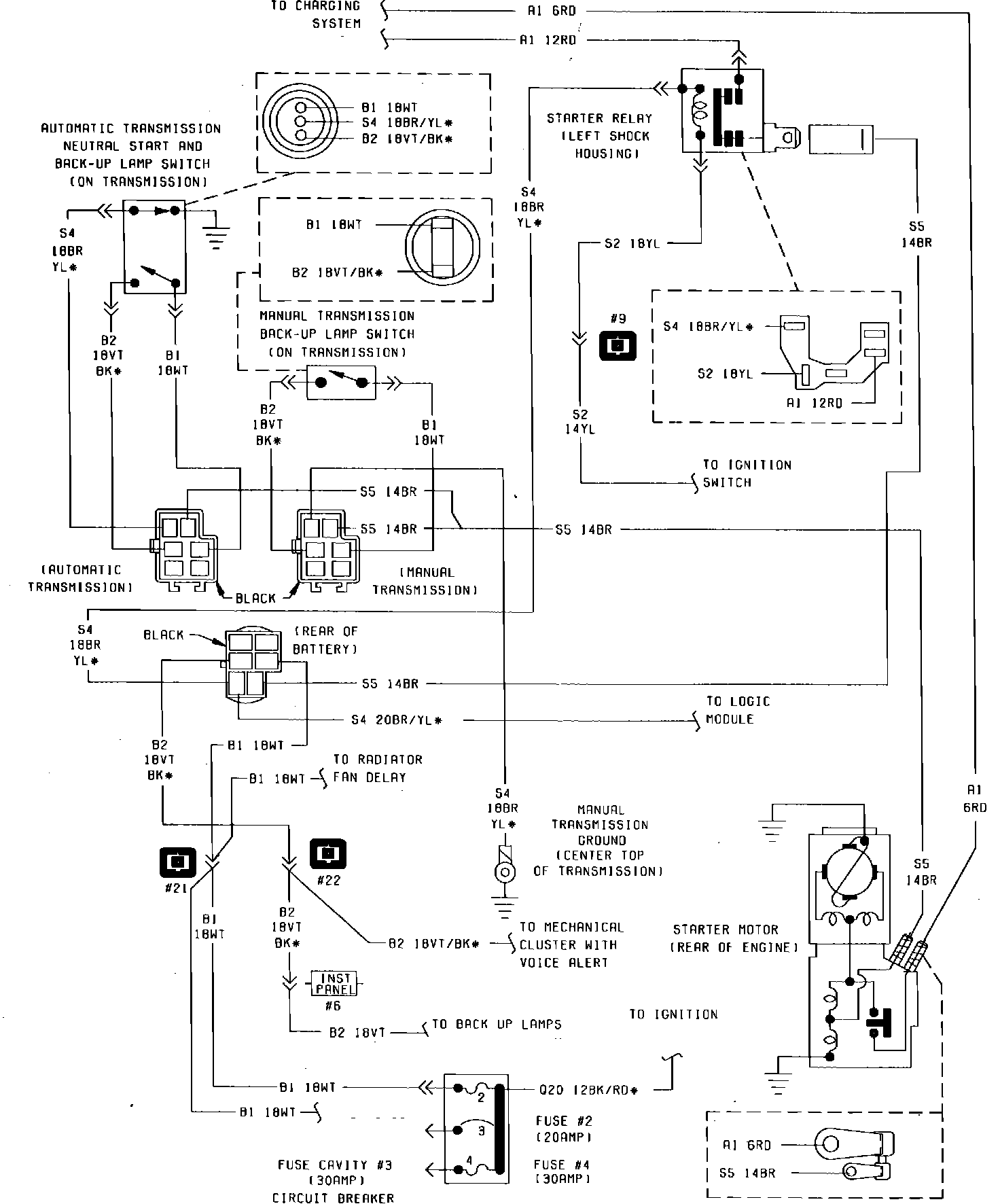 Fig. 85 Starter System Wiring Circuit. 1985 W/2.2 Litre Engine, With EFI Less Turbo:
