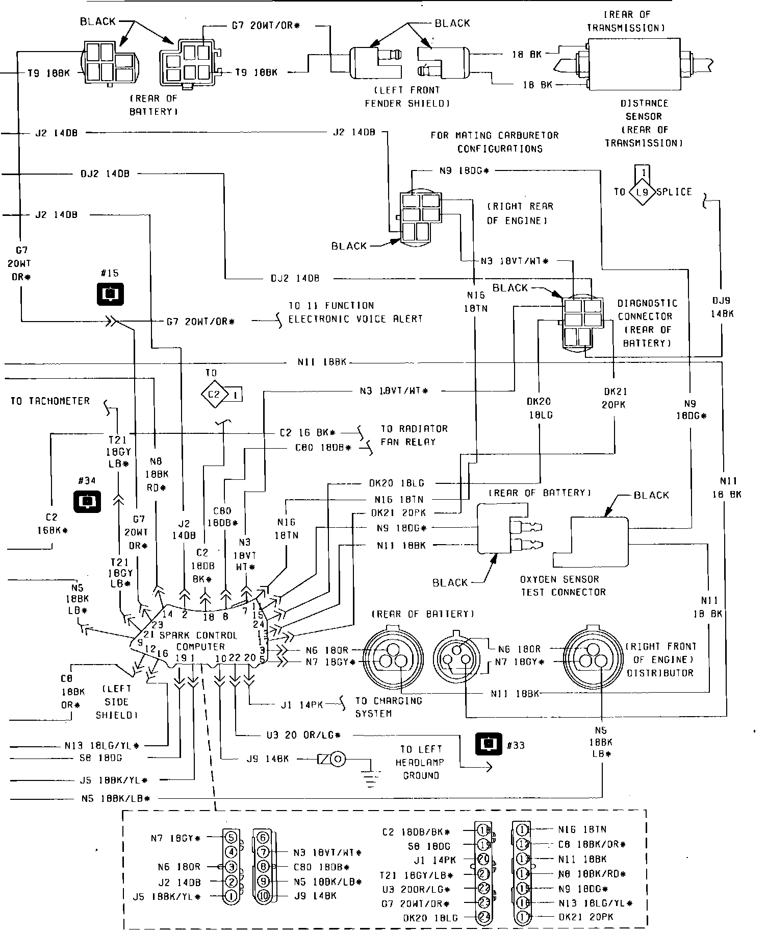 Fig. 19 Electronic Spark Advance Wiring Circuit. 1985 2.2 Litre Engine:
