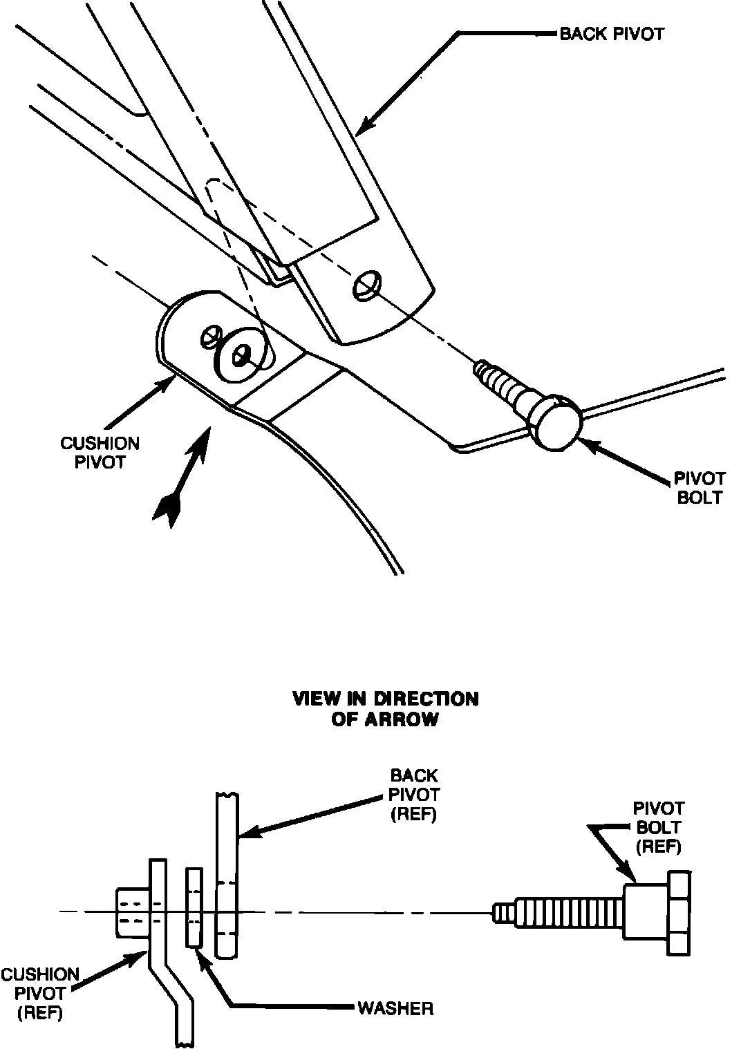 8. Insert a wavy spring washer, PN 6023086, between the back pivot arm and cushion pivot arm and reinstall the pivot bolt (Figure 1).