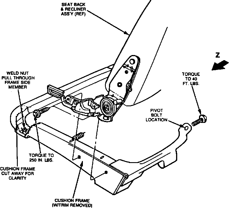 ^ Recliner to Cushion Frame 250 inch pounds (Figure 1)