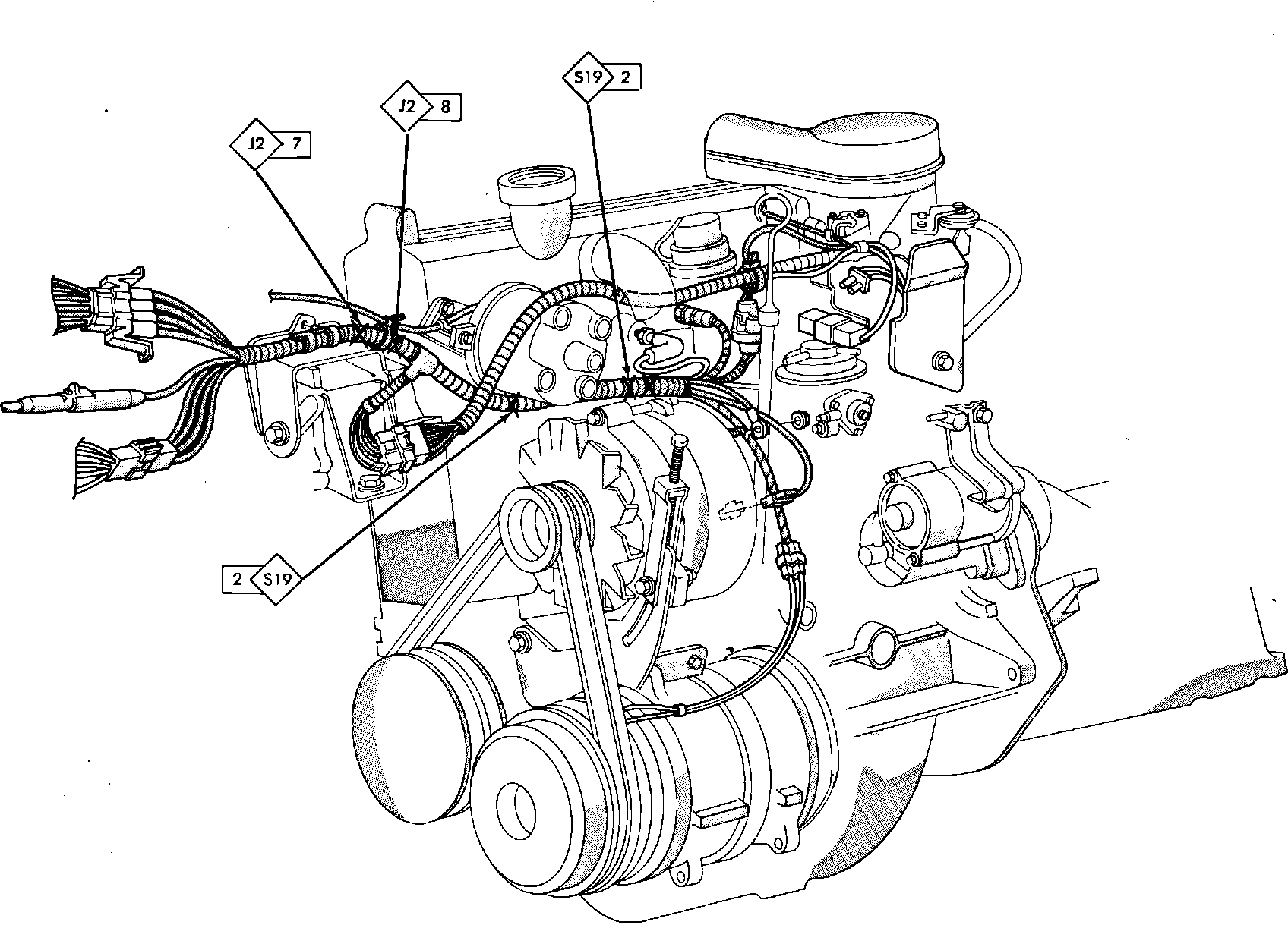 Fig. 110 Splice Location (Engine). 1985 W/2.6 Litre Engine With Feedback: