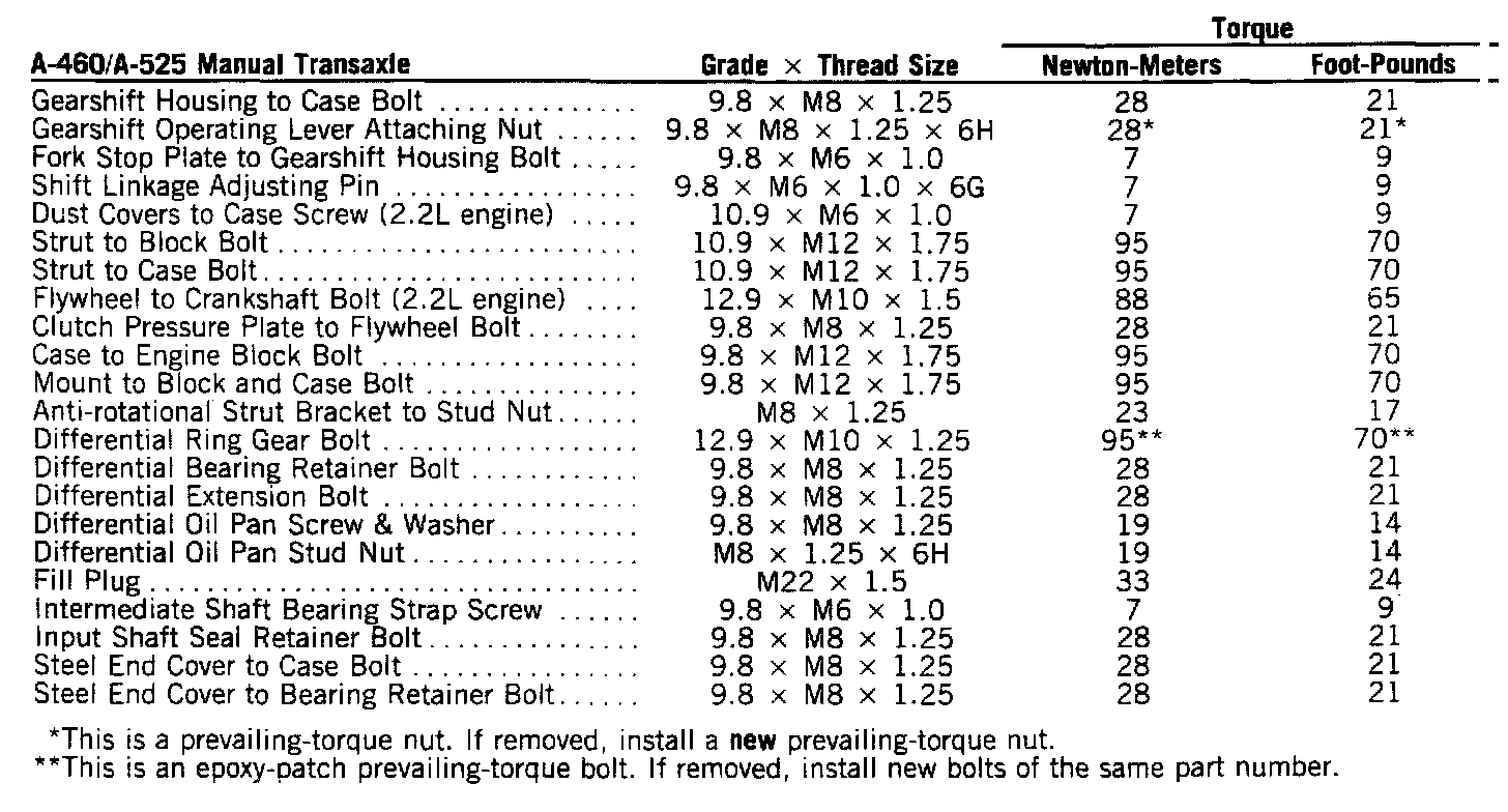 Torque Specifications