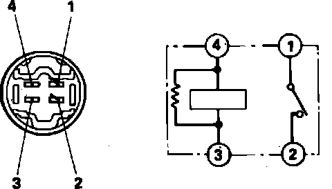 1. With relay disconnected, use suitable ohmmeter to check continuity between terminals 2 and 4. Continuity should exist.