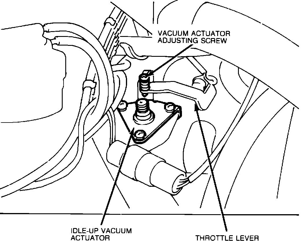 NOTE: CYCLE A/C SWITCH ON AND OFF SEVERAL TIMES TO CHECK IDLE-UP ACTUATOR OPERATION.