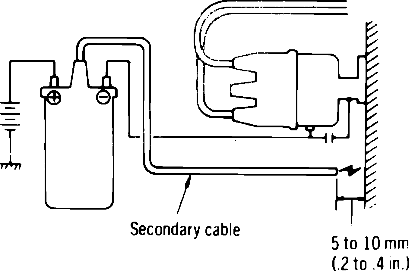 1. Disconnect coil wire high tension lead from distributor cap, then hold wire approximately 0.2-0.4 inch away from cylinder block, Fig. 1.