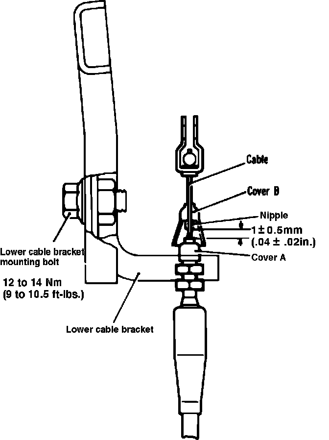 4. Torque lower cable bracket attaching bolt to 9-10.5 ft-lbs, then check cable for freedom of movement with throttle lever in wide open position.