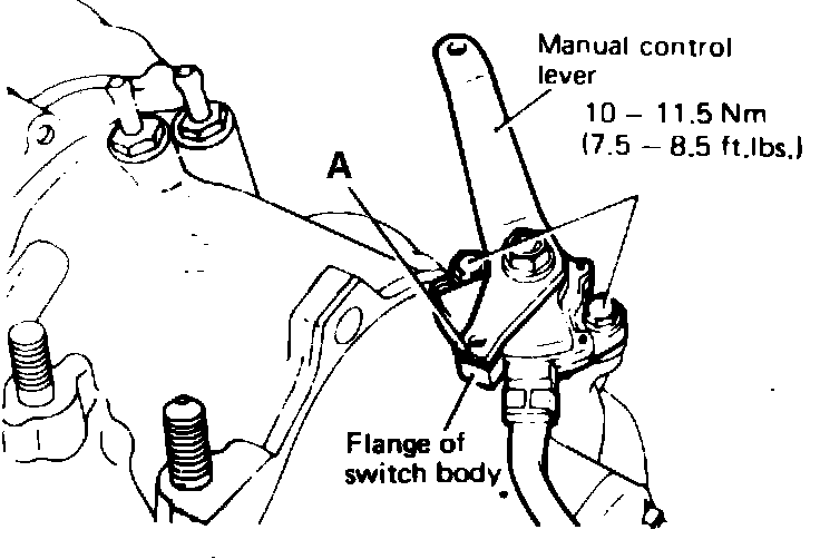 1. Place manual control lever in Neutral position, then turn inhibitor switch body until end "A," Fig. 31, of manual control lever overlaps switch body flange.