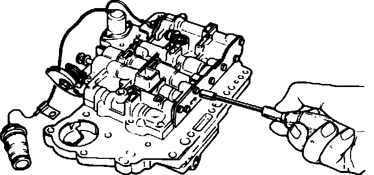9. Remove valve body assembly, using care not to damage manual valve.
