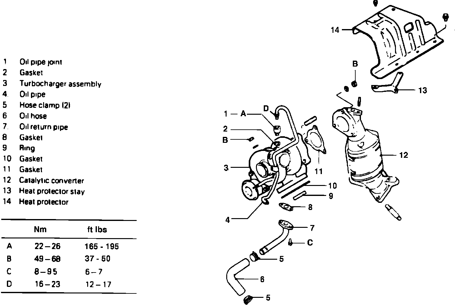 Fig. 2 Exploded view of turbocharger assembly. 1985-86 Models w/2600cc engine: