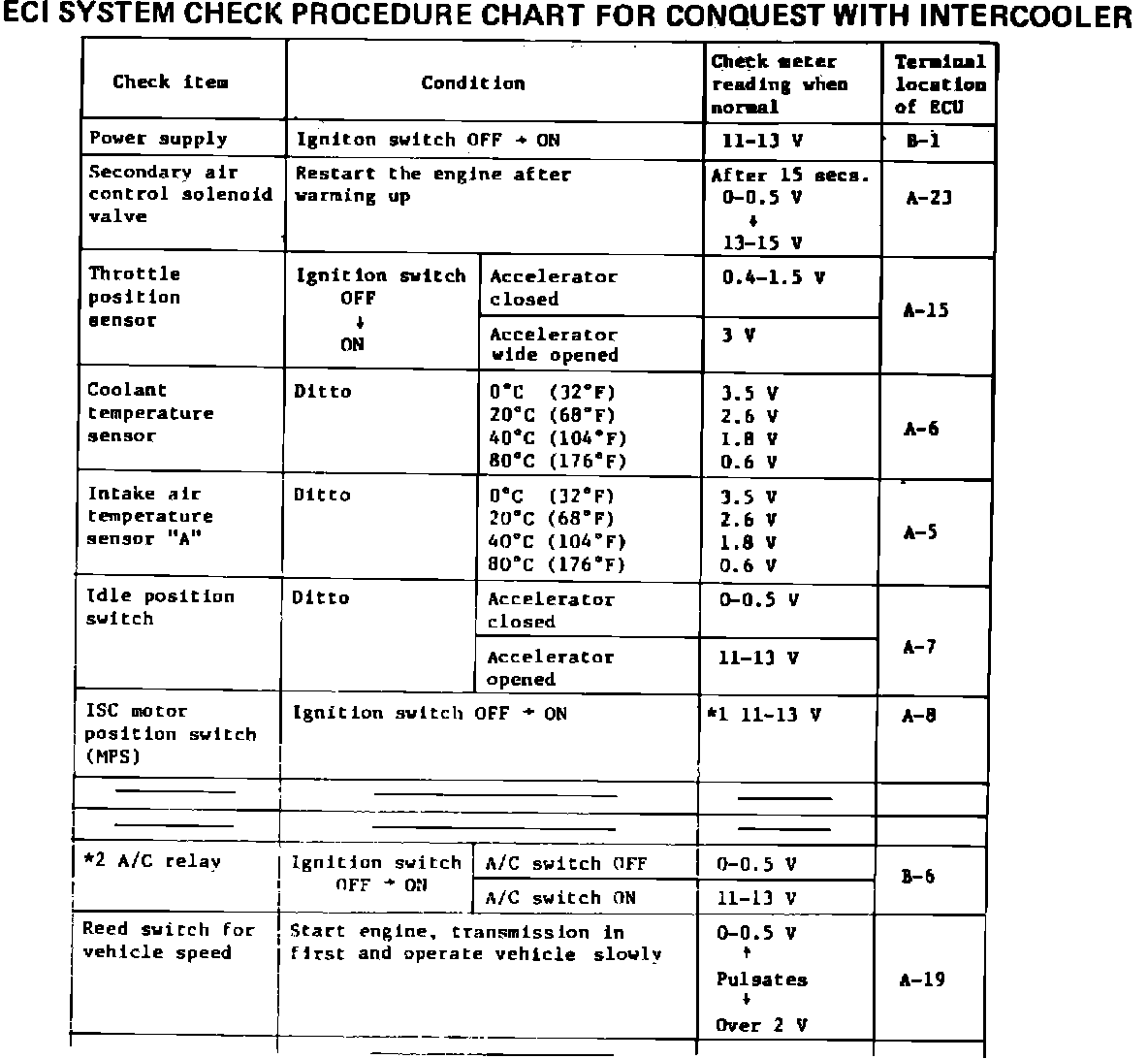 ECI SYSTEM CHECK PROCEDURE CHART FOR CONQUEST WITH INTERCOOLER: